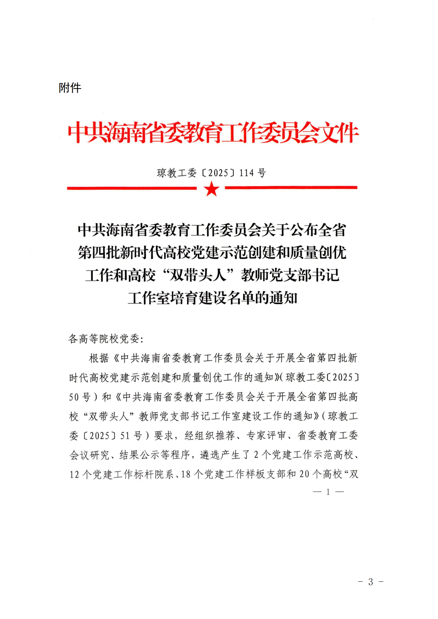 近日,我院第一党支部成功入选全省第四批高校“双带头人”教师党支部书记工作室培育建设名单。这标志着教师党支部在党建与业务深度融合方面迈出了坚实的步伐,开启了新的征程,为学院的高质量发展注入了新的活力。