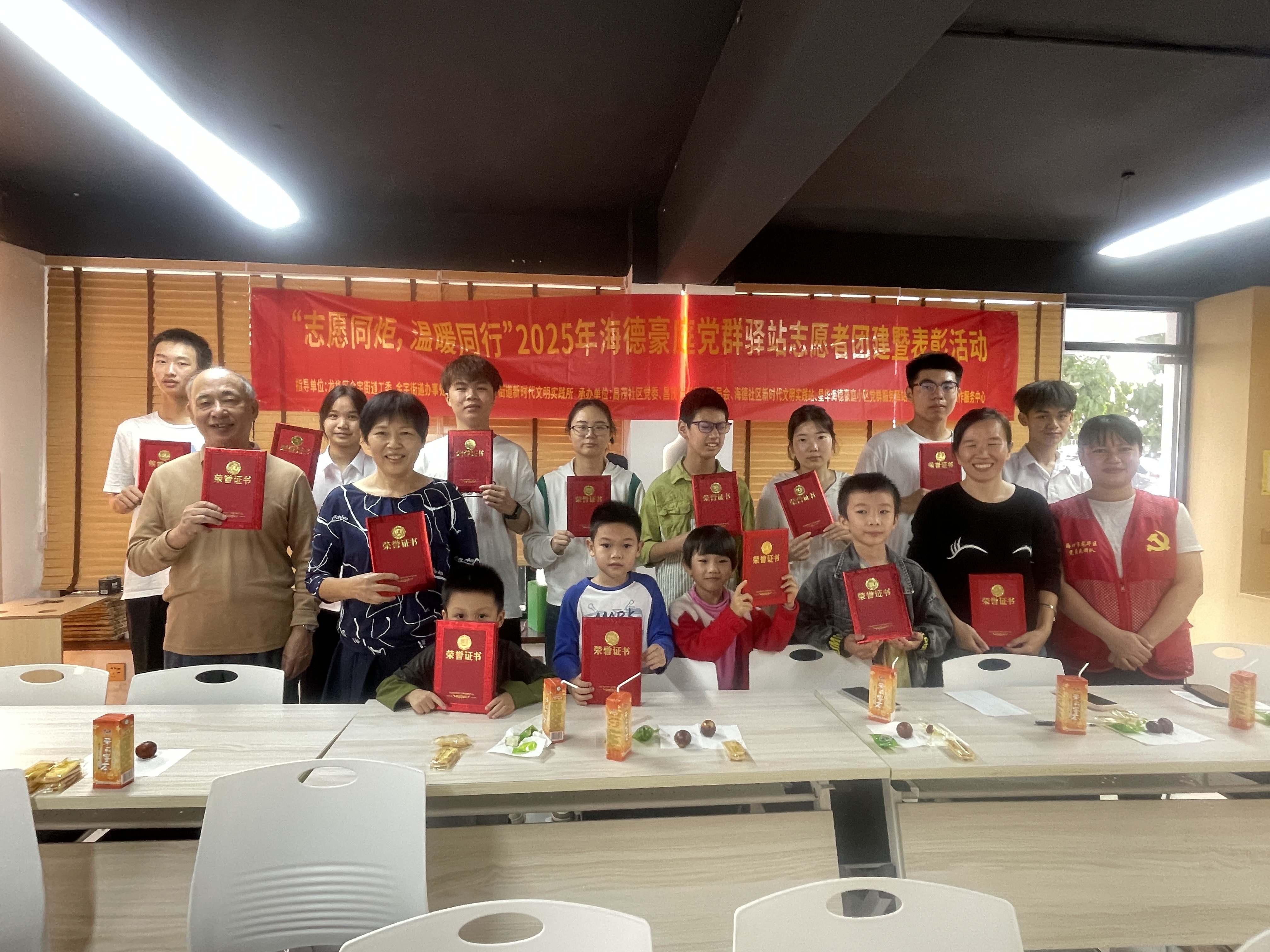 为弘扬志愿服务精神,凝聚团队力量,近日,旅游学院第二党支部积极参与并协办“志愿同炬,温暖同行”2025年海德豪庭党群驿站志愿者团建暨表彰活动。活动中,来自学院的9名同学因表现突出,荣获“优秀志愿者”称号。