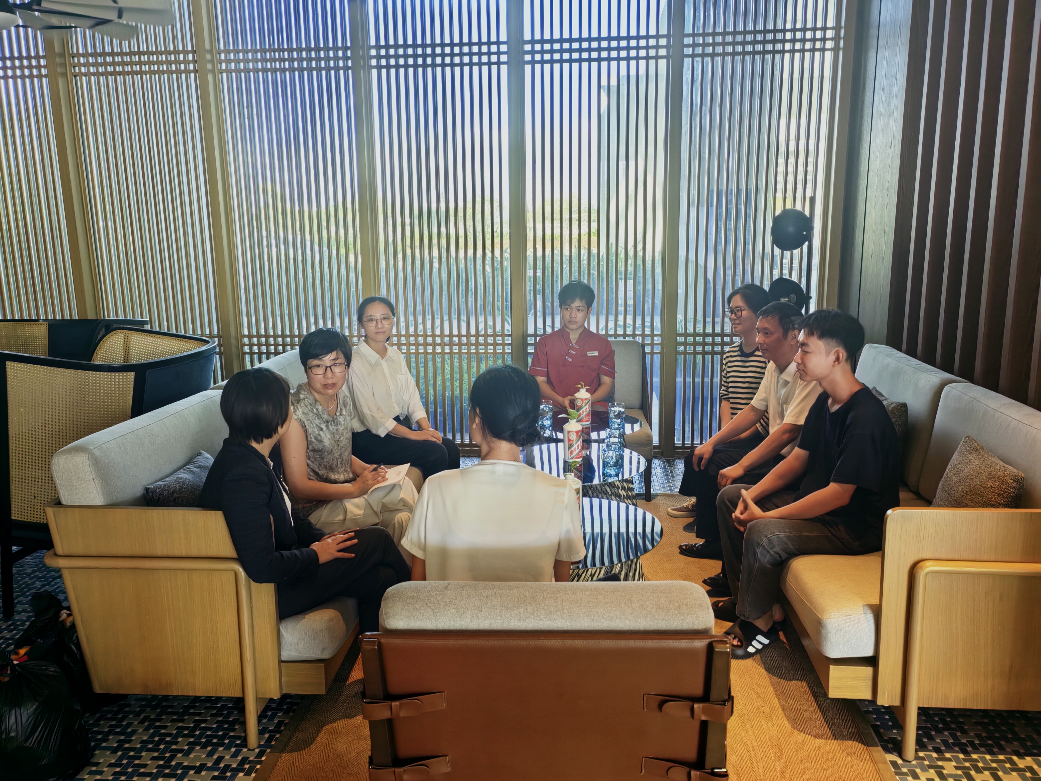 在茅台度假村,人力资源总监王玉香与符经理参与会谈。双方聚焦酒店行业新趋势与人才需求变化展开讨论。教师们深入了解学生的实习情况,鼓励大家珍惜在民族品牌企业的实践机会,不断提升综合素质。