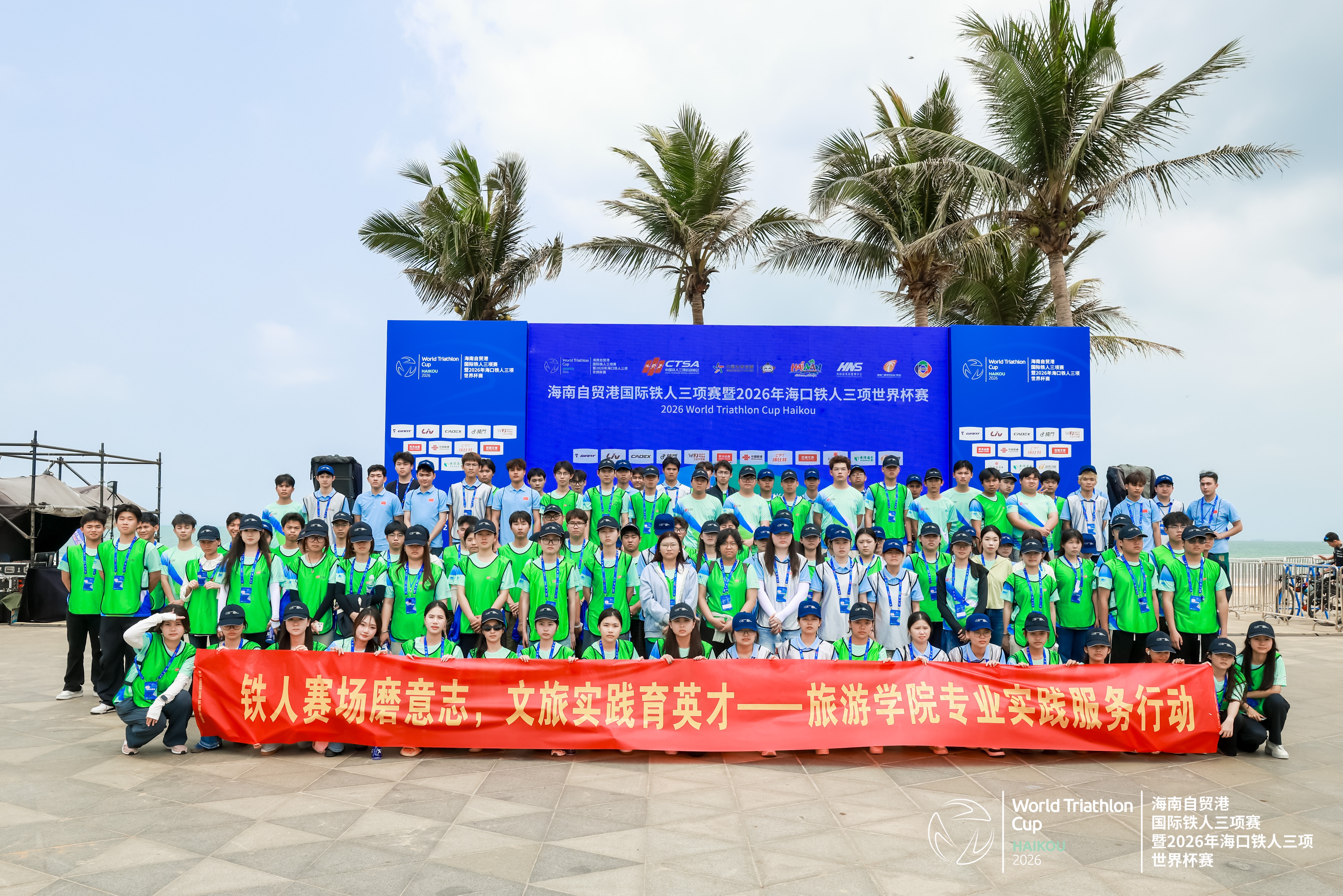 近日,2026年铁人三项世界杯海口站比赛圆满落幕。我院160余名学子以专业志愿服务深度参与赛事运行,将课堂搬进赛场,在国际舞台完成了一次别开生面的专业实践。