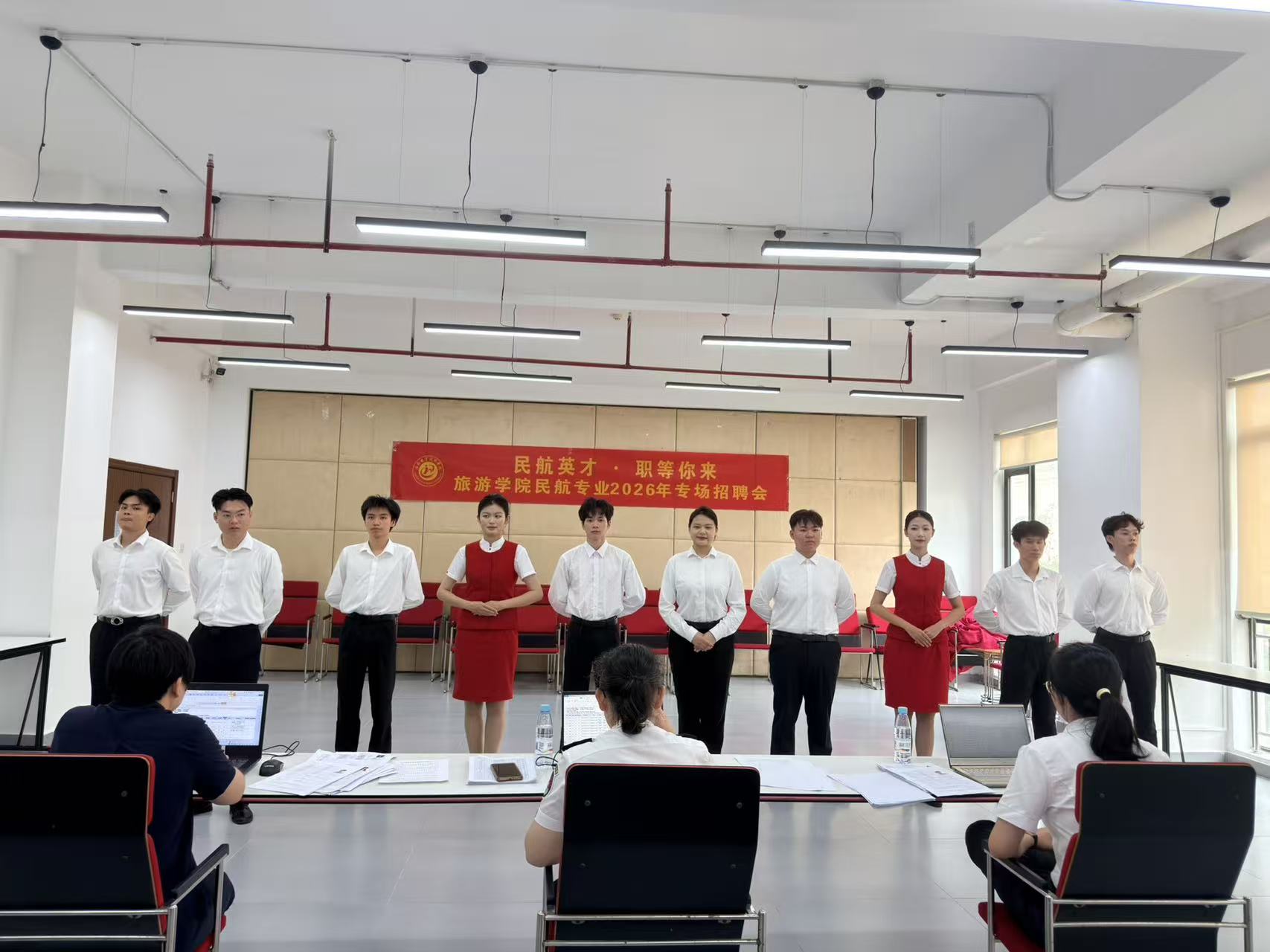 为扎实做好旅游学院民航专业学生的实习与就业工作,进一步拓宽学生的实习与就业渠道,2026年4月13日,海口美兰国际机场与长沙黄花国际机场专场招聘会在海口美兰国际机场多媒体教室顺利举行。我院2024级民航安全技术管理、空中乘务两个专业共73名学生参加了此次招聘会。